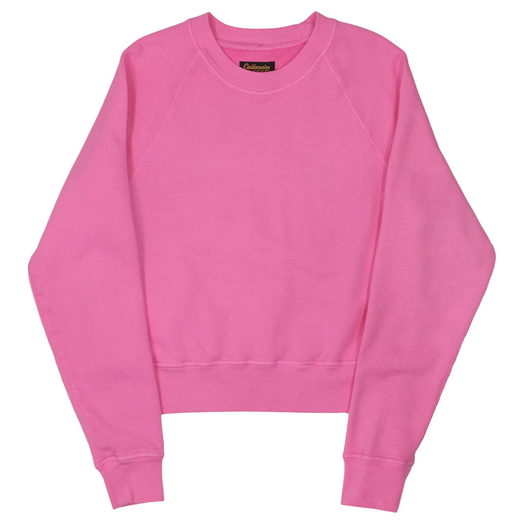 Long Sleeve Cropped Raglan Crewneck Fleece Sweat Shirt - Perfect Pink