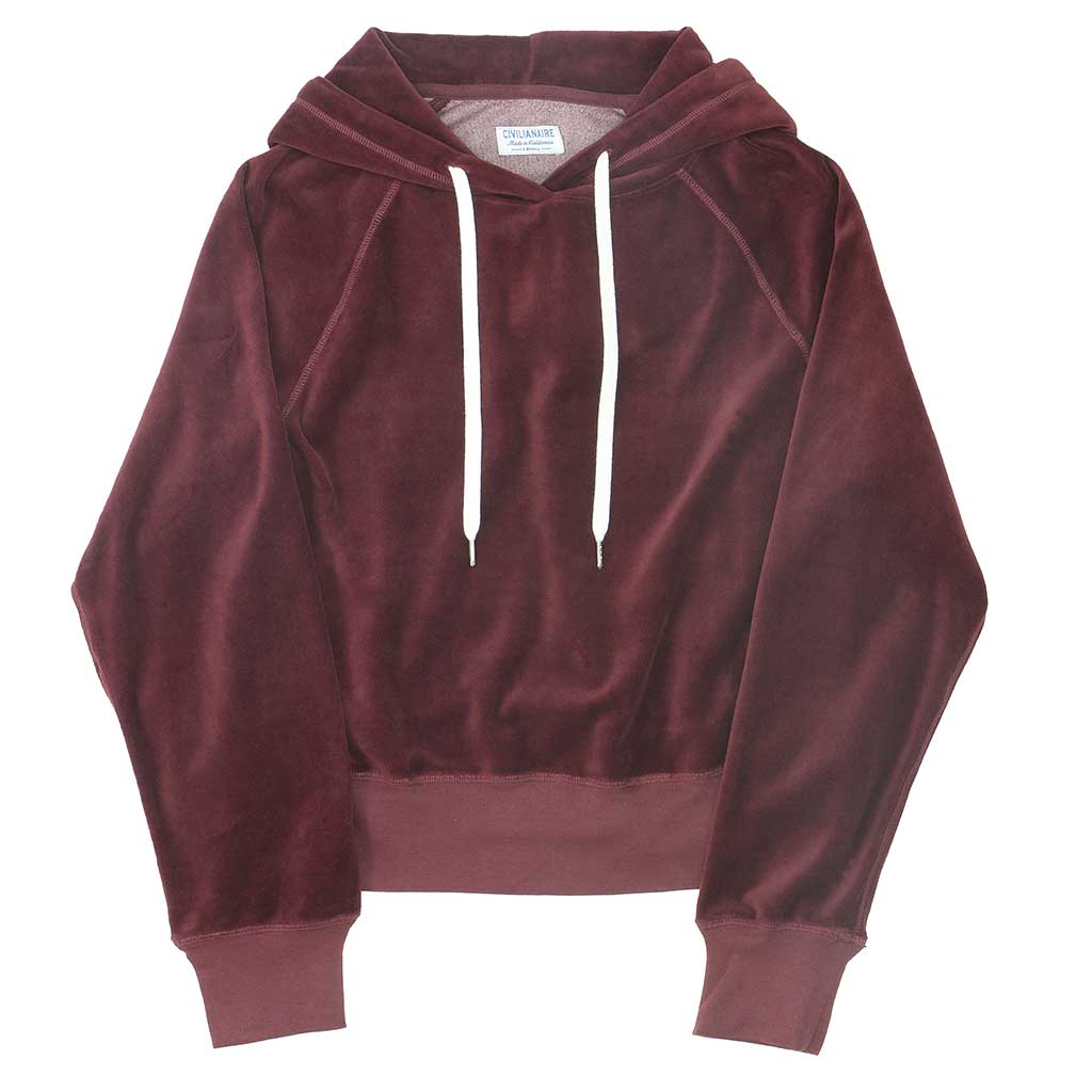 Long Sleeve Cropped Velour Hoodie - Burgundy