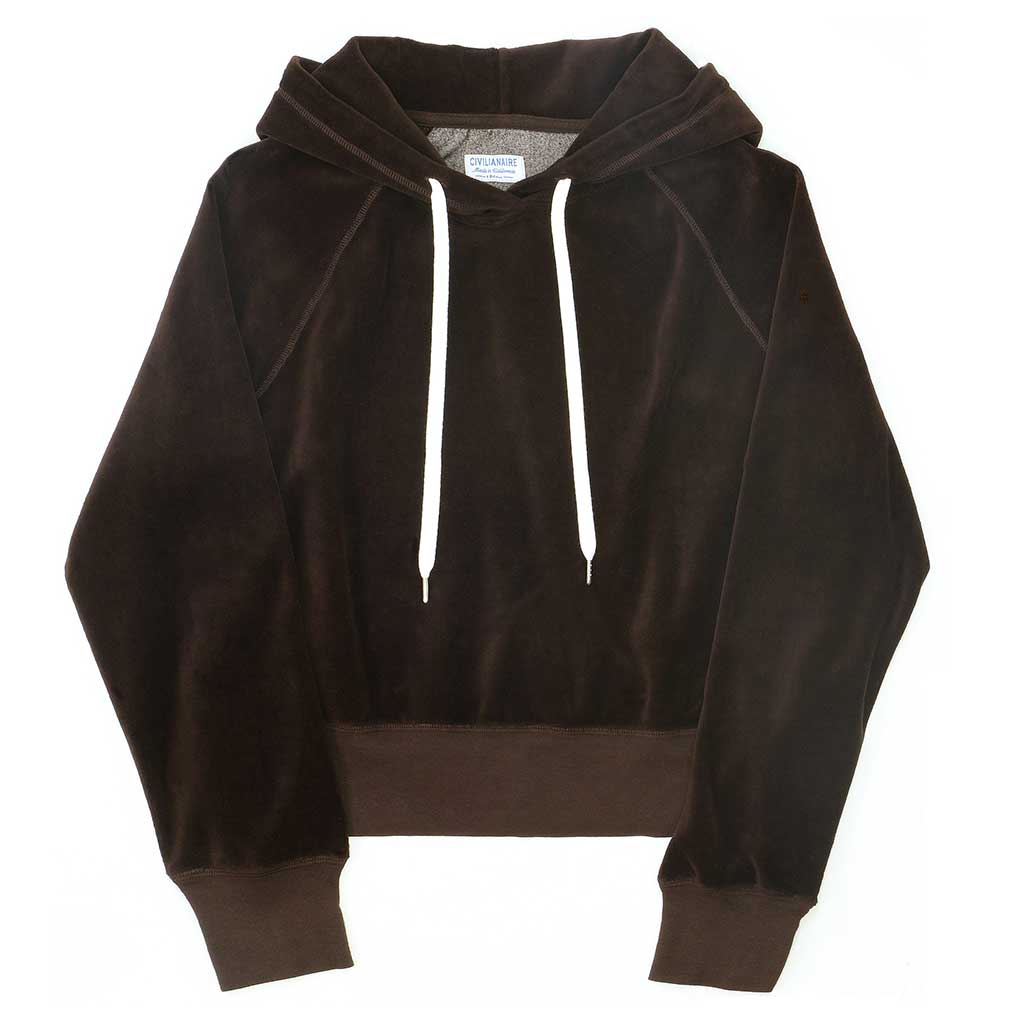 Long Sleeve Cropped Velour Hoodie - Chocolate