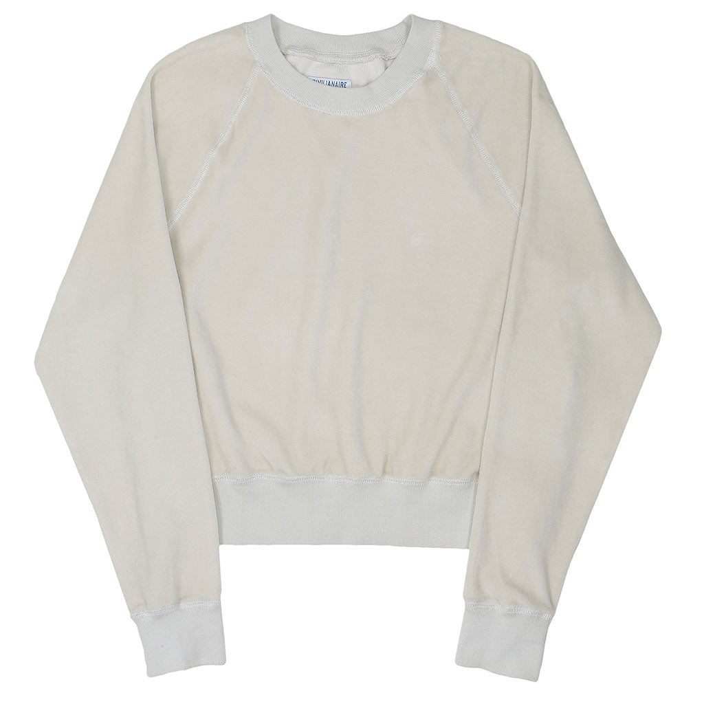 Long Sleeve Cropped Velour Raglan Crewneck - Ash