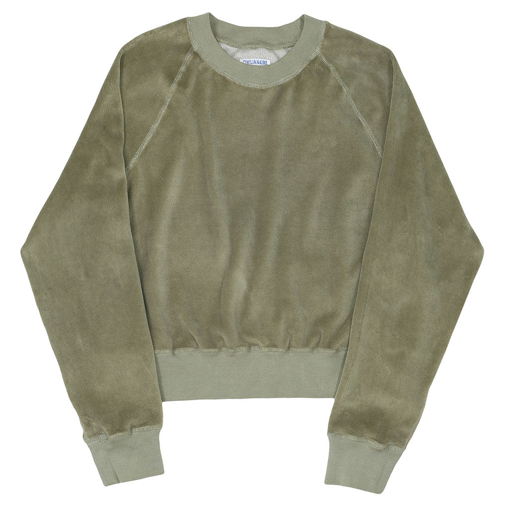 Long Sleeve Cropped Velour Raglan Crewneck - Biskra