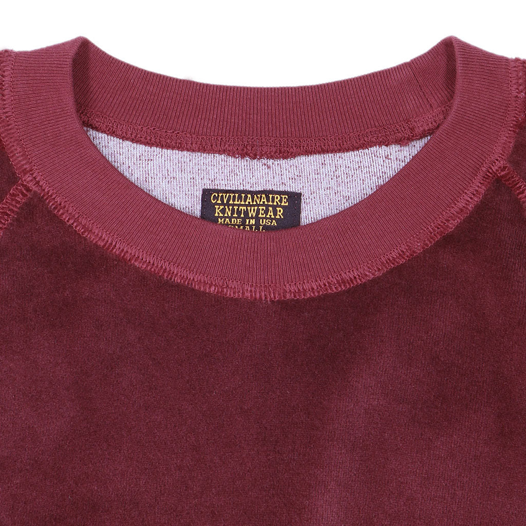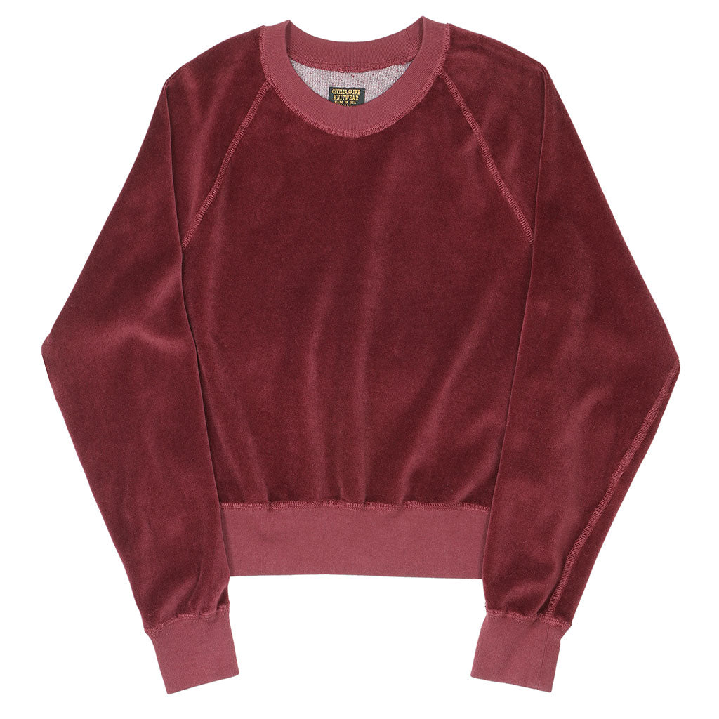 Long Sleeve Cropped Velour Raglan Crewneck - Earth Red