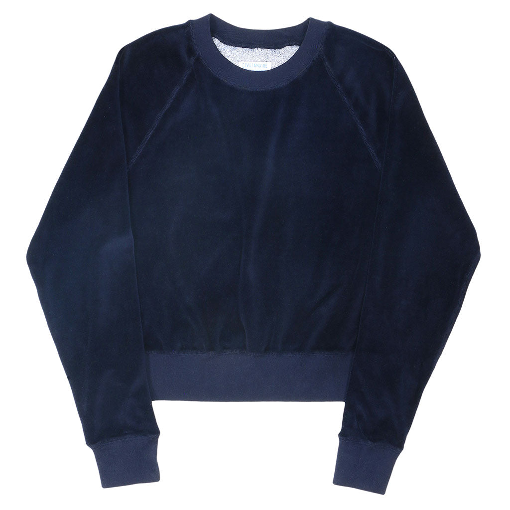 Long Sleeve Cropped Velour Raglan Crewneck - EZ Dark Navy