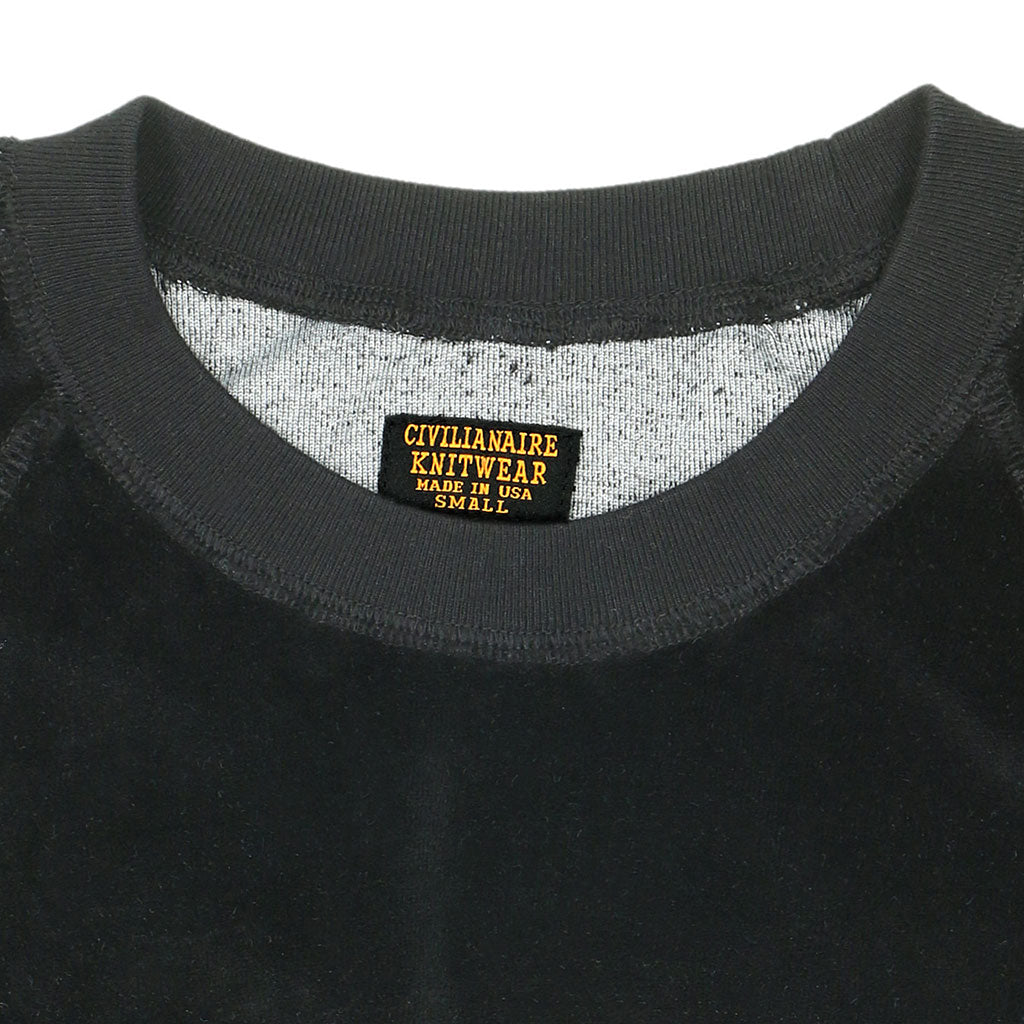 Long Sleeve Cropped Velour Raglan Crewneck - Jet Black