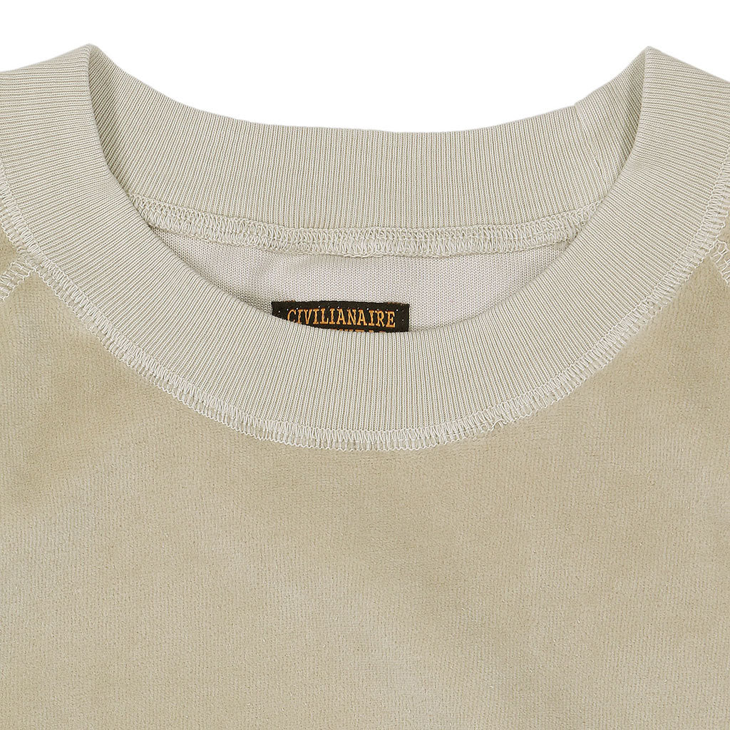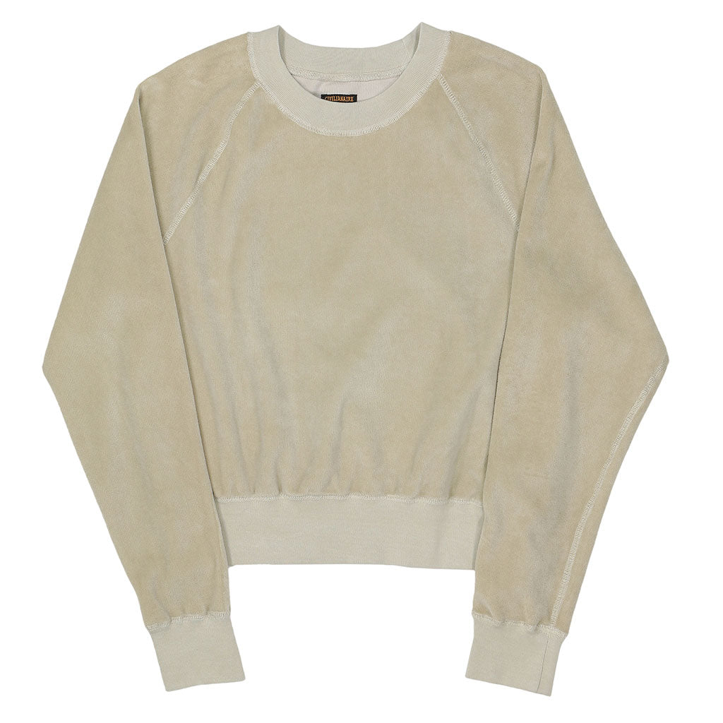 Long Sleeve Cropped Velour Raglan Crewneck - Stone