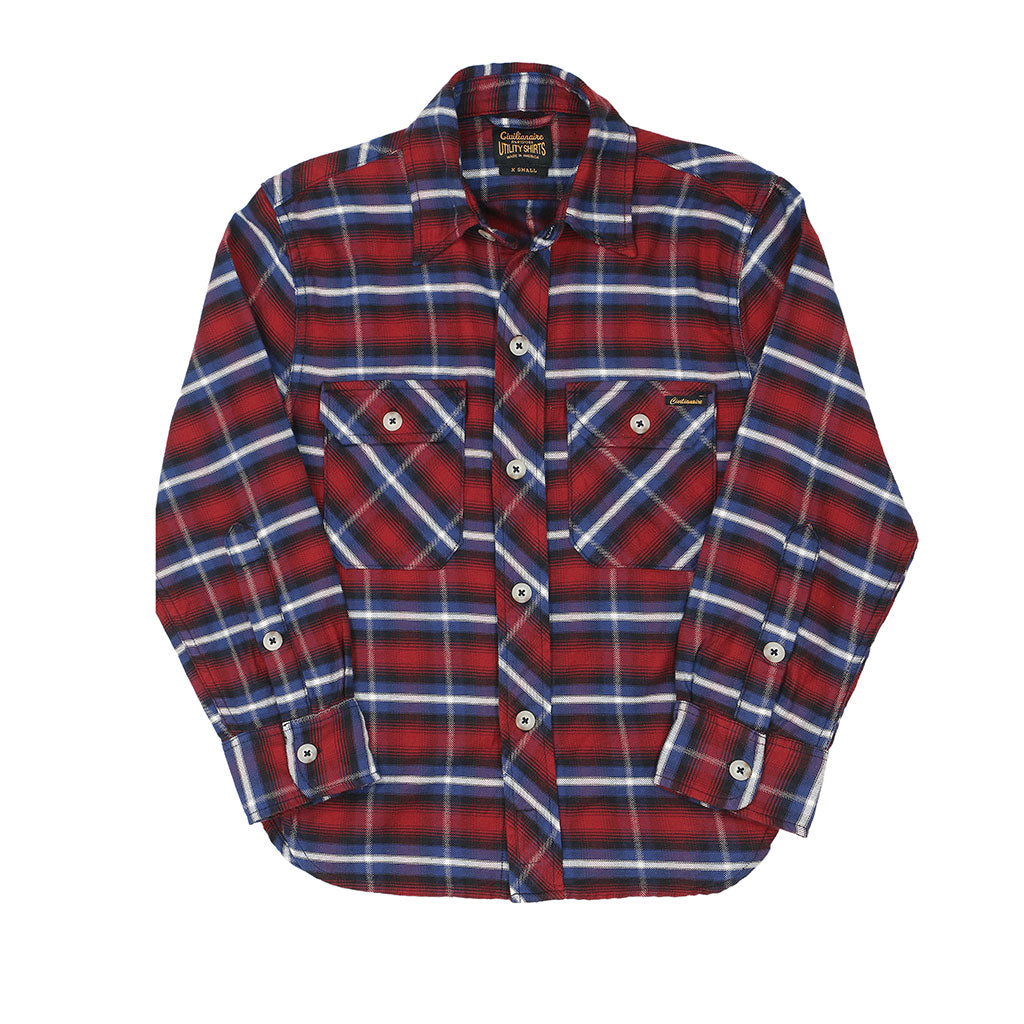 Long Sleeve Women's Boyfriend 2 Notch Flap Pocket Shirt / JAPANESE COTTON Flannel - Blue/Red