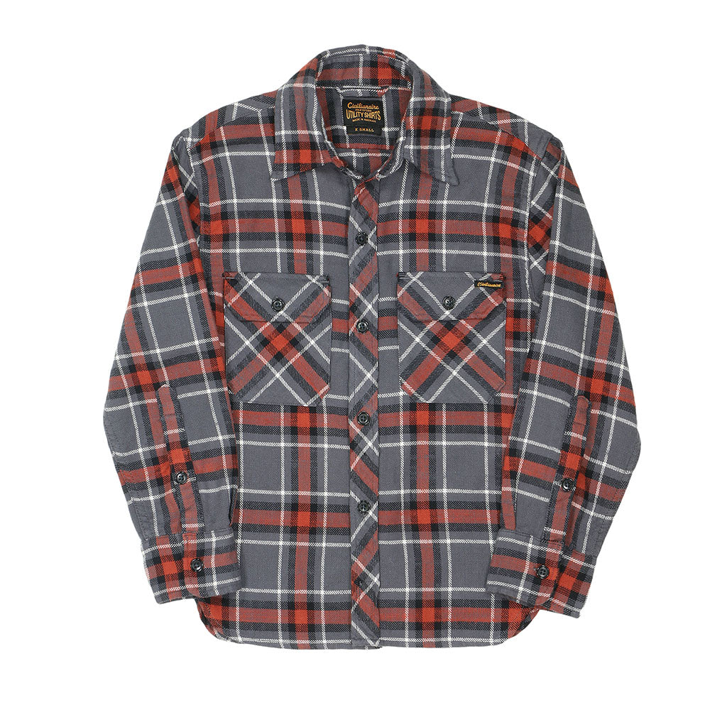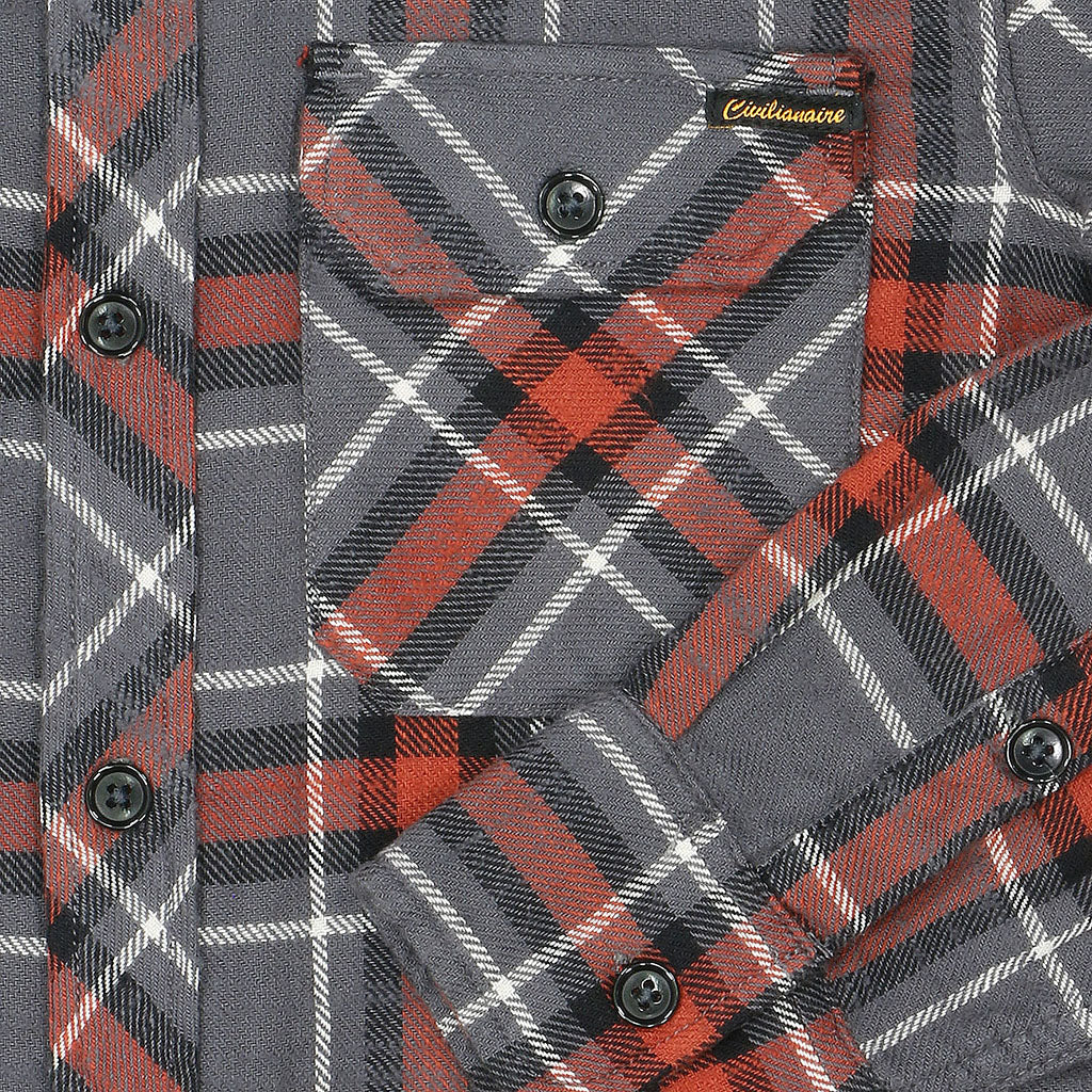 Long Sleeve Women's Boyfriend 2 Notch Flap Pocket Shirt / JAPANESE COTTON Flannel - Gray/Orange