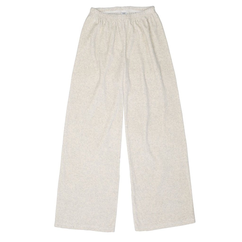 "SIENA Bell Bottom" 30" Inseam Velour Sweatpants - Oatmeal